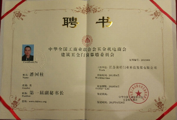 全國工商聯五金建筑門窗委員會副秘書長