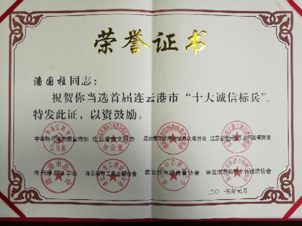 連云港市十大誠信標兵