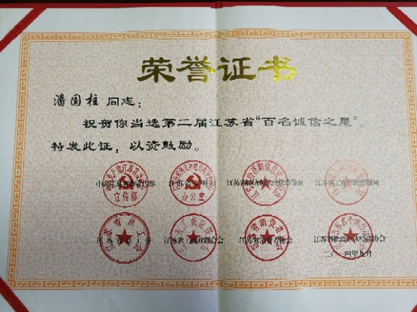 江蘇省百名誠信之星