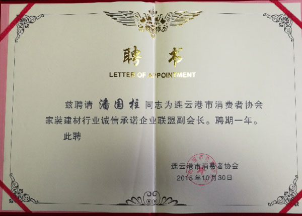連云港市消費者協會家裝建材行業聯盟副會長