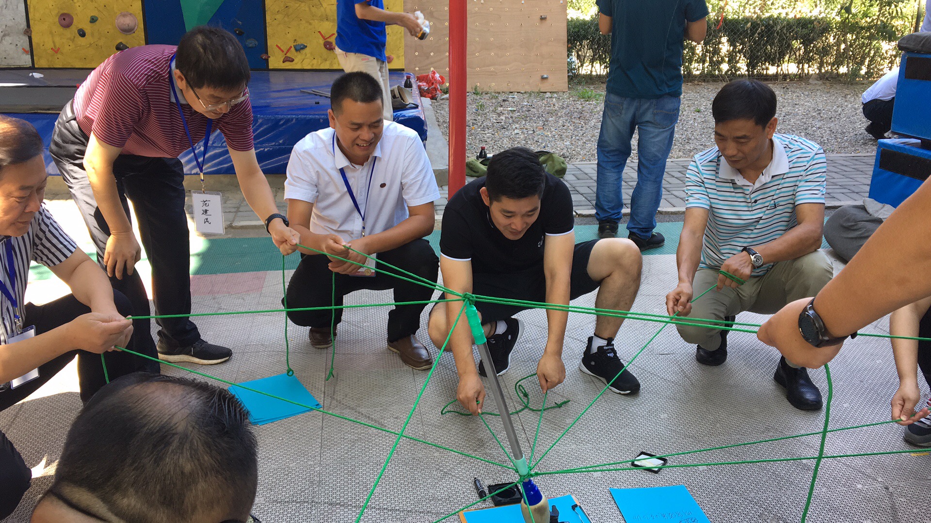 開班當(dāng)天,特邀北京大學(xué)拓展訓(xùn)練研究中心的專業(yè)資深教練帶領(lǐng)學(xué)員開展戶外拓展訓(xùn)練,將所有學(xué)員分成4組,會(huì)長、黨支部書記潘國柱第一組組長,通過親身體驗(yàn)、互動(dòng)參與的教學(xué)方式,充分激發(fā)學(xué)員活力,加深了解、增進(jìn)友誼,迅速提升班級凝聚力。