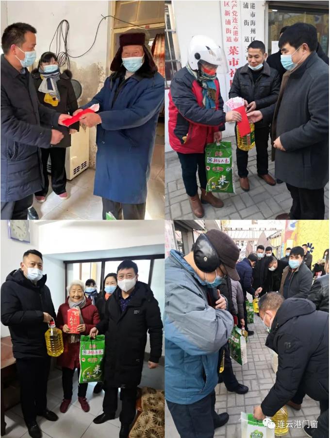 近日,連云港市門窗協會黨支部書記、會長潘國柱帶領常務副會長孫華才、陳和兒,副會長徐達、楊武、戴隆強、姚連斌、劉東磊,副書記蒯學通,監事長高德俊,秘書長胡啟楷,執行秘書長唐春和,副秘書長莊東生和常務理事耿華、劉祥強、劉云秋等愛心會員,先后走訪了海州區“新浦街道菜市社區”和“錦屏鎮李圩村”,為二十多戶困難群眾送年貨、送現金、送去新年的祝福和問候,讓困難群眾感受社會大家庭的溫暖。